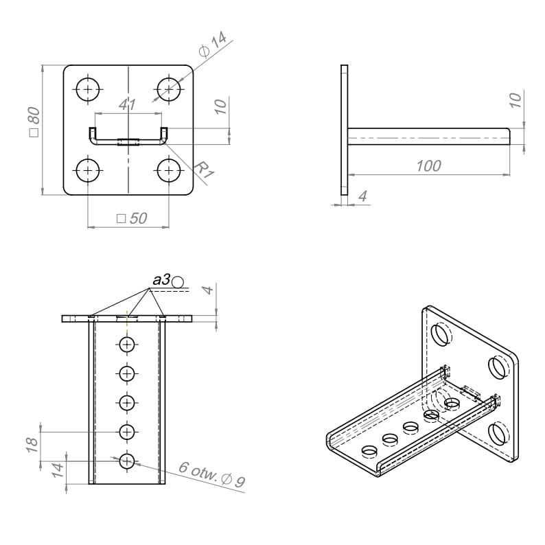Uchwyt jest przeznaczony do napędów PHOBOS BT A, PHOBOS AC A, KUSTOS BT A i umożliwia montaż napędu bez konieczności spawania standardowego uchwytu do słupka.