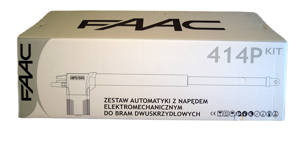 Dzięki temu otrzymujesz gotowy zestaw FAAC 414, który można dopasować do typowej instalacji bramy dwuskrzydłowej.